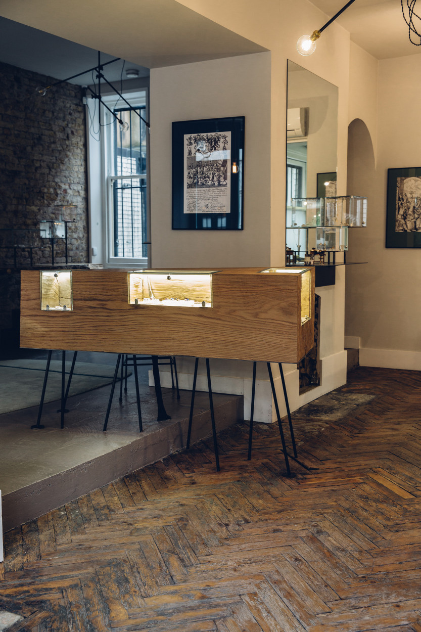We worked with our favourite jewellers on this project to create a showroom and workshop on Chiltern Street in Marylebone. Our work consisted of designing and overseeing the production of the space itself, and all the furniture and display units.