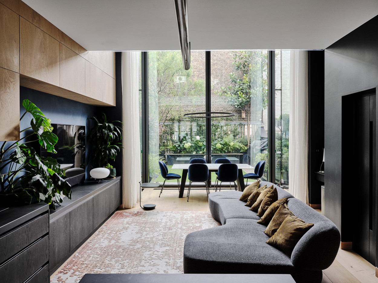 A new-build house in Marylebone. The front facade had to be retained, but behind it we created a brand new house laid out on seven floors. As is frequently the case with our projects, in close collaboration with our client, we created all aspects of the architecture, interior design, and craft.
